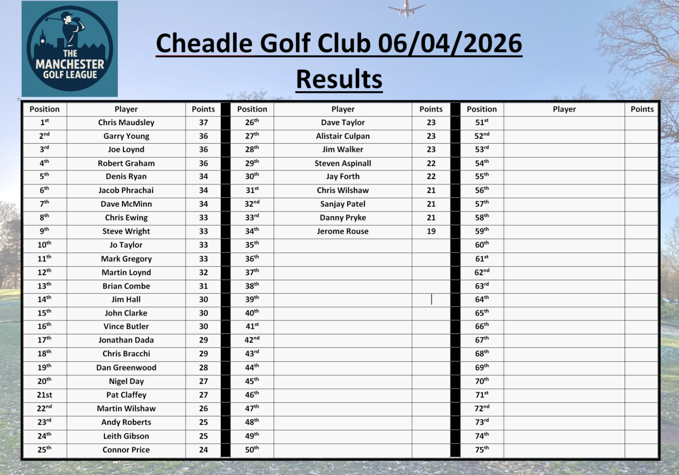 - 12th June- Didsbury Golf Club- £30 PP